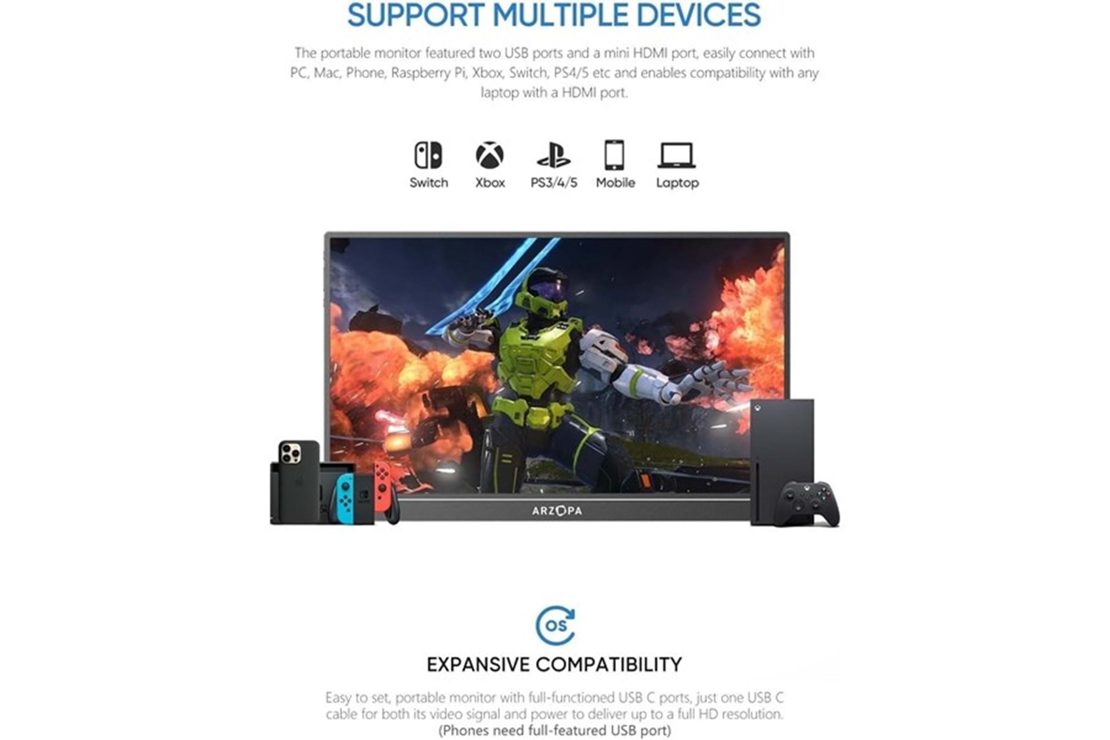 ARZOPA 15.6" IPS A1 60Hz USB-C/mHDMI Taşınabilir Monitör (1920 X 1080)