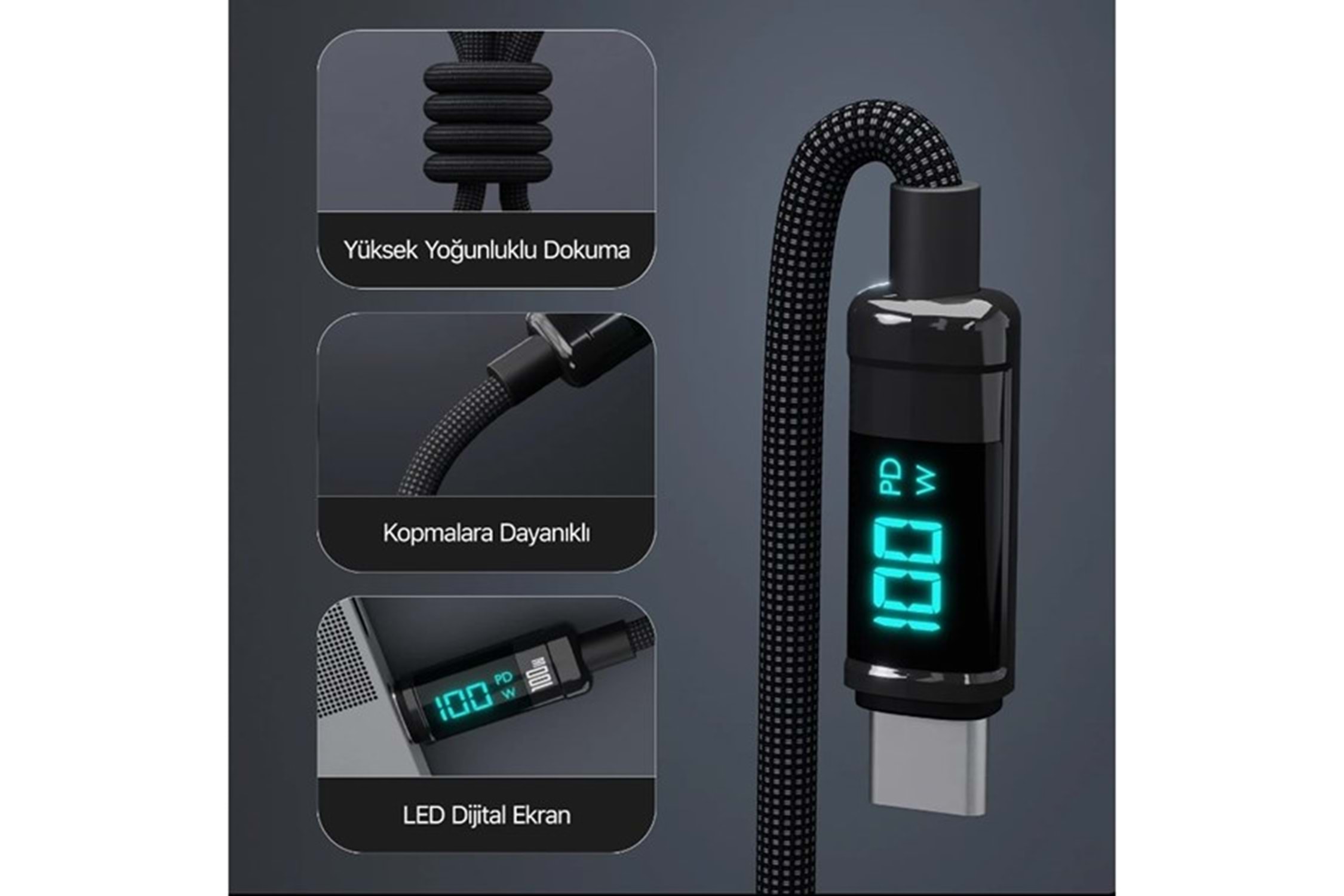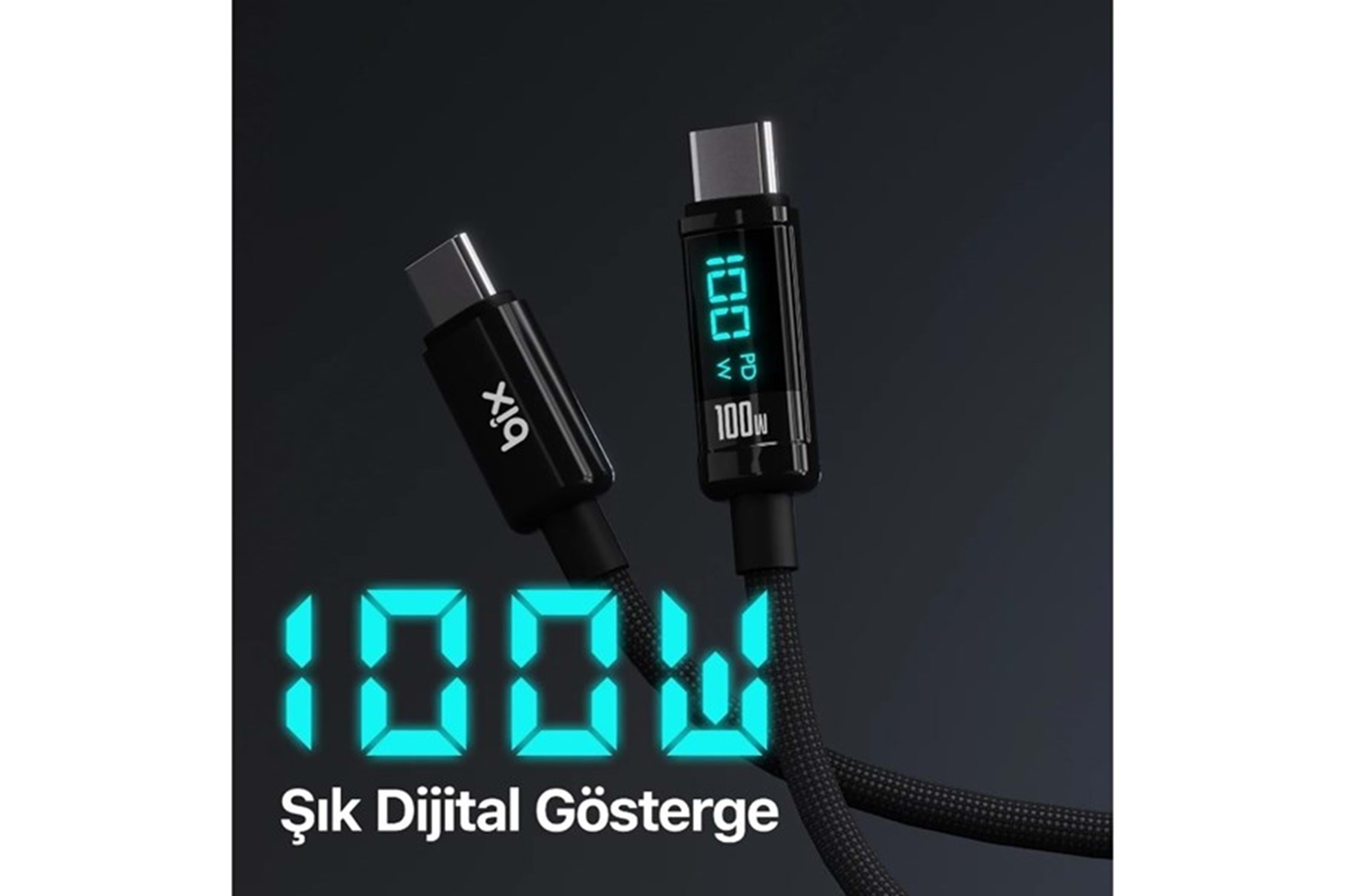BİX BX09CC-BK SİYAH TYPE-C 100W 1 metre DİJİTAL EKRANLI ŞARJ VE DATA KABLOSU